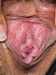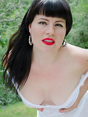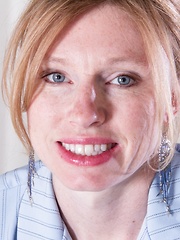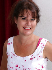 Mature amateur Luci Lamoore shows her pierced nipples & spreads her hairy cunt