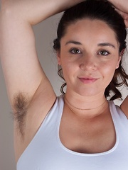Amateur teen Rosalyn Sphinx displays her unshaved armpits & furry holes