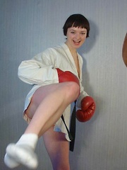 Young Russian Ramira strips in lingerie and stocking
