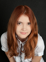 Lorena has dark long hair and cat like eyes , she has red lips and hot nips, and she will have you do flips.